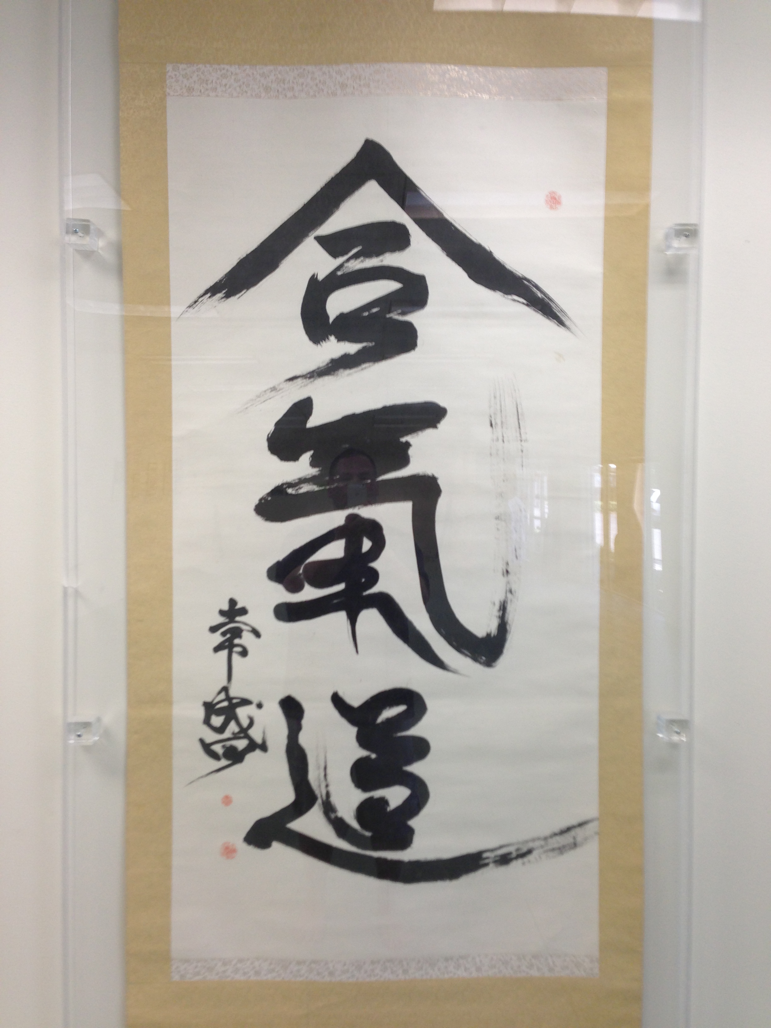The university houses Morehei Ueshiba O Sensei’s calligraphy of “AI KI DO” (pictured on the left) at the head of the dojo. The first time I saw it was almost a year ago when I took my shodan (1st degree black belt) test. I was very moved having seen it and wanted to spend a little time writing about what the characters say to me, personally, as an Aikido practitioner.