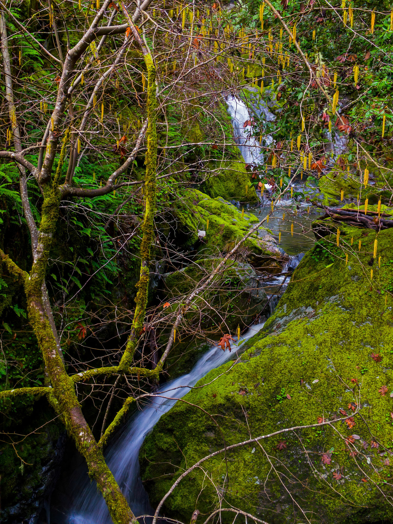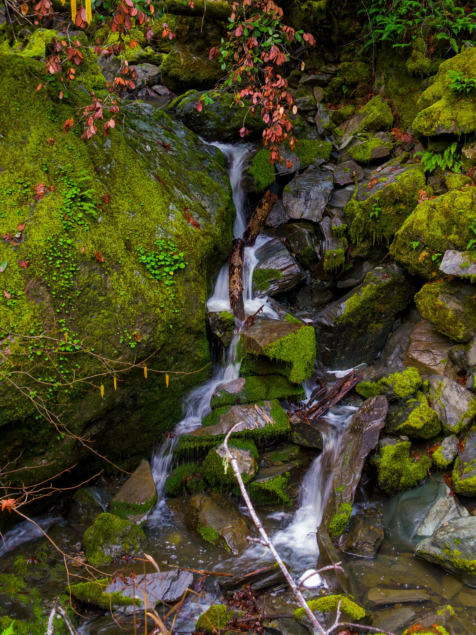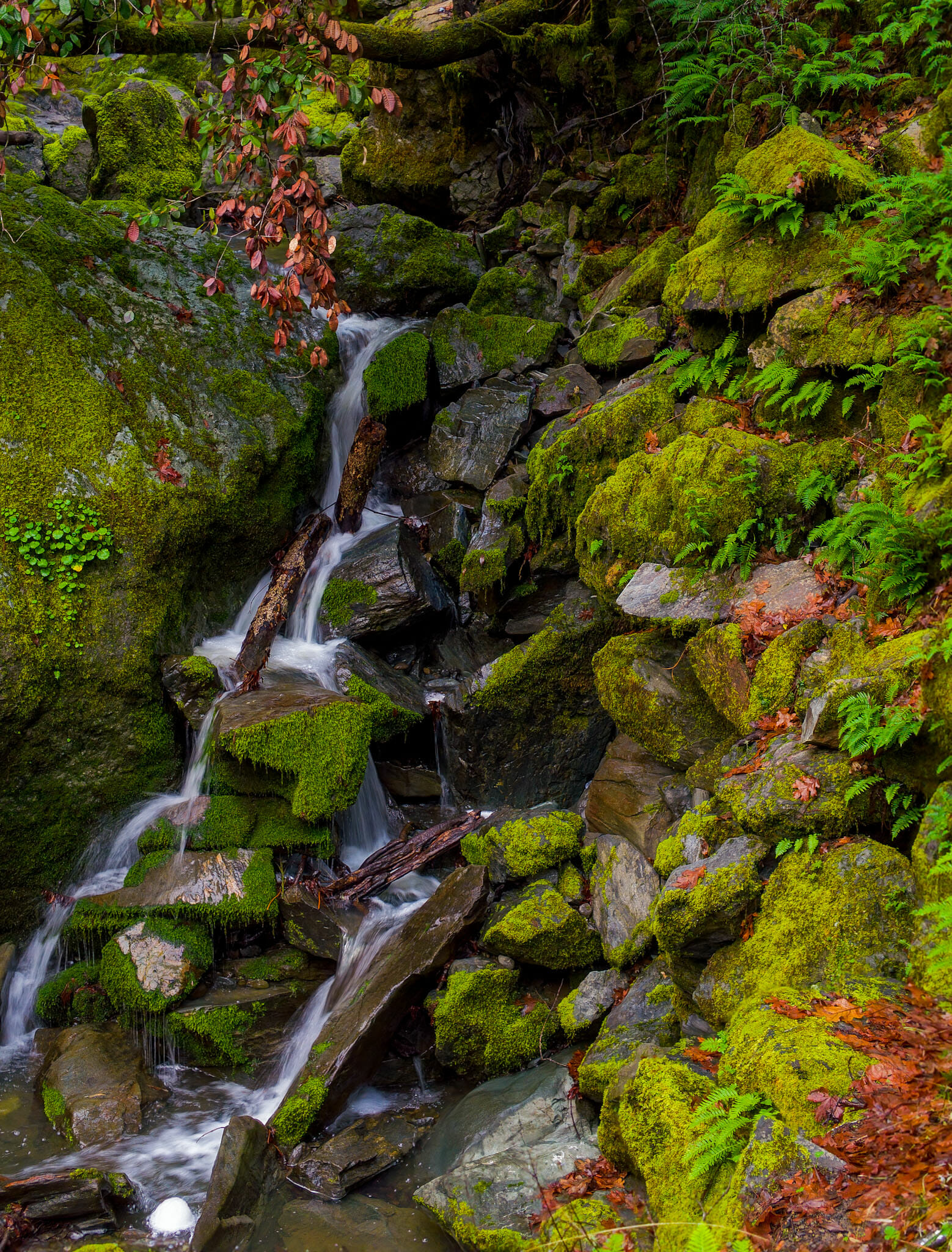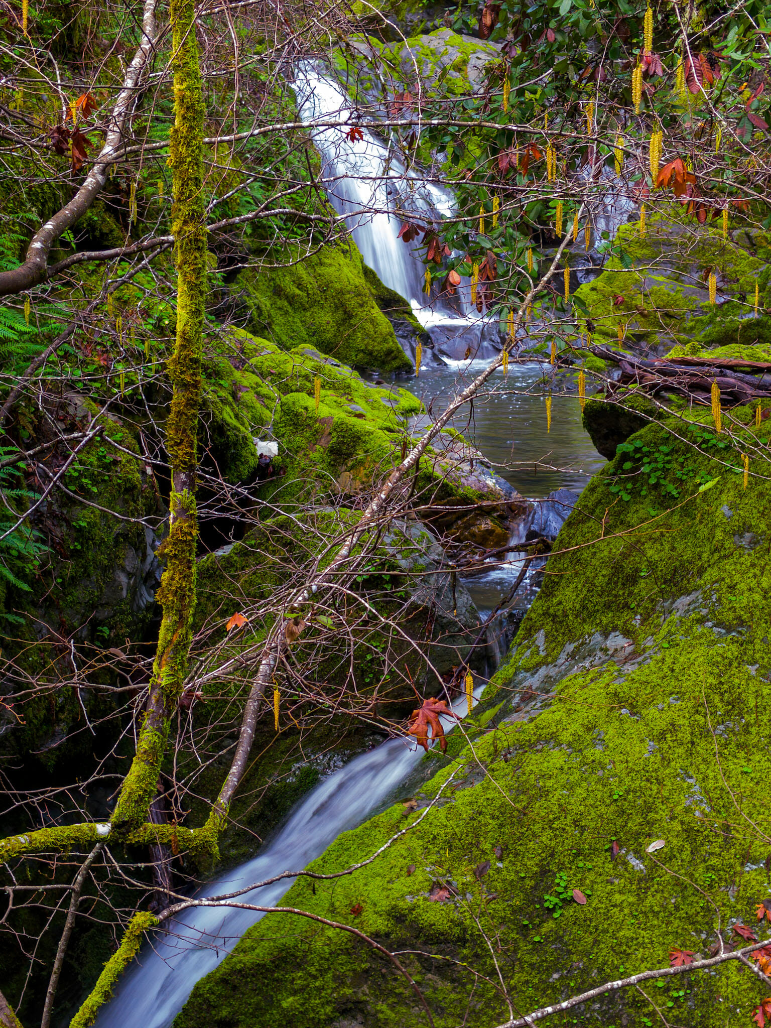 I’m finding that the earlier I leave Saturday mornings, the more time I have to take in the breathtaking beauty as I drive along the road to my weekend destinations. It’s rained the last couple of days and this has allowed the water to flow a little more in Cazadero. Down the street from where I live is a beautiful small waterfall called Fern Falls. It was flowing nicely so I stopped and took a few pictures.