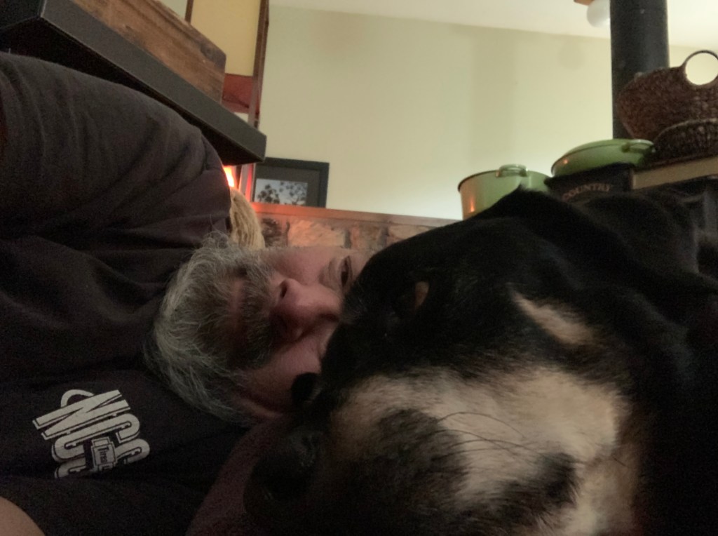 It’s 1:15 and we were just texted by the vet. They should be here sometime between 2:30 and 3. Things will be different in the house. We have a dog bed upstairs that we move back and forth between our living room and our upper deck. She has a dog bed on the lower deck. We have a dog crate that Sammi enjoyed solace in when the vacuum cleaner came out. All of her chew toys, her dog bowl, her water bowl… All of these things will no longer be used. This is all happening too fast. Even up until a week ago or so, I thought we had more time together. I thought that her death was months or years away, even though Ro kept on telling me that her time with us was short.