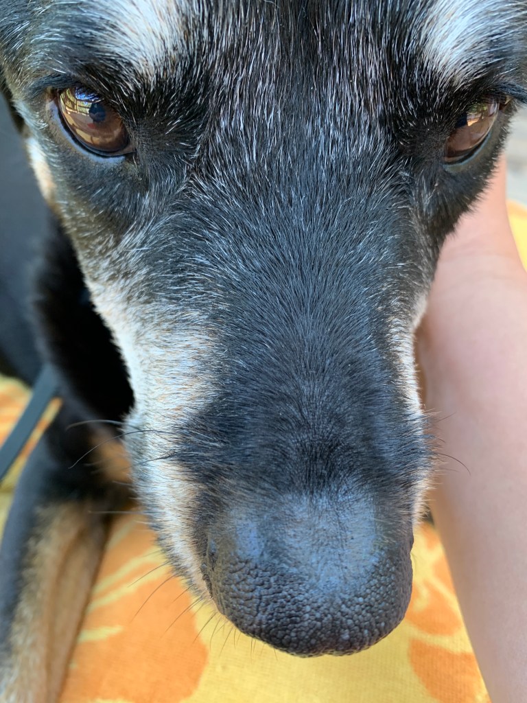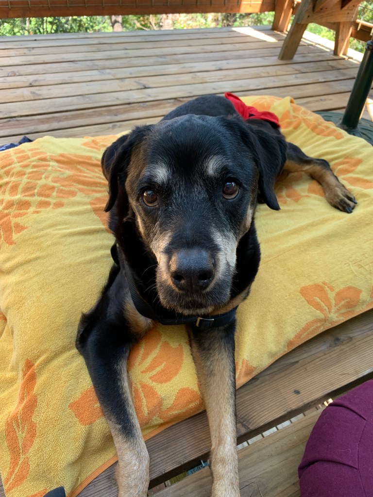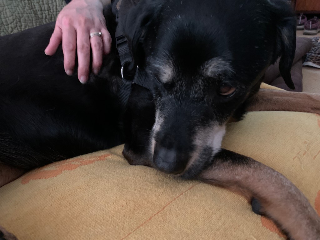 Today is July 31st, 2020. We are in the midst of the covid-19 pandemic and so the process has certain protocols built in. We will have to do this outside. When the vet is near the dog, we will need to be at least 6 feet away. There are two drugs involved, one is a strong sedative that puts her to sleep. Once she’s asleep the vet will move away and we will have a few minutes to say goodbye until the second drug is administered ending her life.